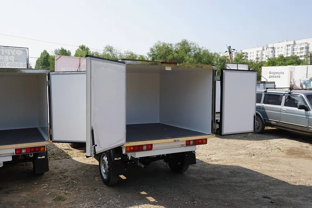 Описание для фургонаВнешняя обшивка – крашенная оцинкованная сталь, внутренняя обшивка - пищевая оцинкованная сталь, пол – рифлёный алюминий, портал - нержавеющая сталь. Двери - задние распашные. Запоры штанговые одинарные. Фургон выполнен под установку холодильного оборудования в Москве.