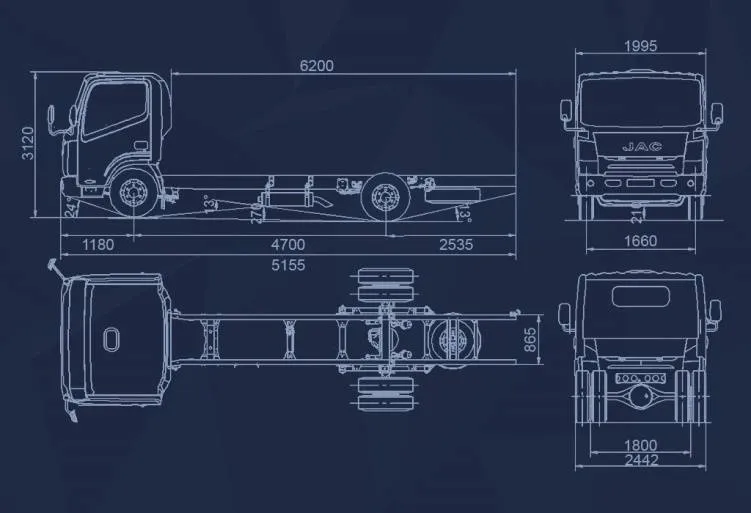 - Безопасность вождения. Для лучшего контроля дороги на JAC 75 установлены пневматические тормоза с системой ABS и инновационная топливная система.