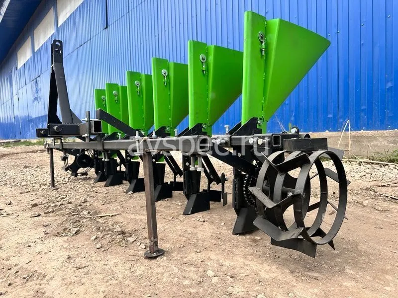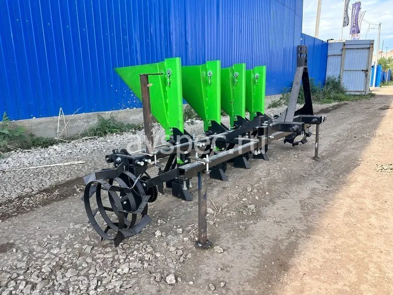Для обеспечения стабильной работы на неровной почве применена двовальная система механизма дозирования с разделенным приводом. Шаг посадки в ряду: 110 мм, 125 мм, 140 мм, регулируется изменением передаточного числа на цепном редукторе. Для компенсации длины цепи использован натяжитель. Сошник и заделки регулируемые, глубина посадки – 60-80 мм. Ширина междурядий регулируется в пределах 200–330 мм. Ширина пути – 2220 мм.