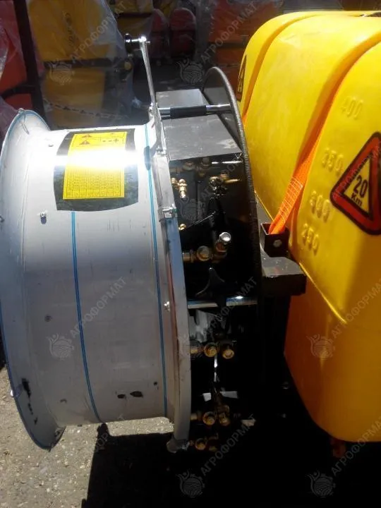Опрыскиватель вентиляторный садовый,бак-400 литров, 4-х мембранный насос 105 л/мин, 245 кг, латунная форсунка, кардан в комплекте, функция самозакачки, гидравлическое смешивание удобрений